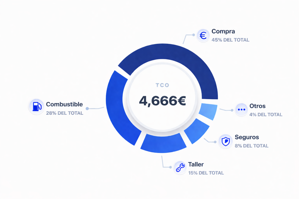 Toda tu flota en un cuadro de mando para que sepas exactamente cuánto te cuesta cada vehículo.